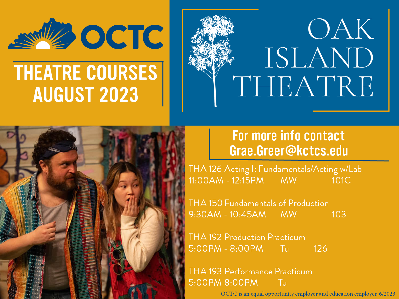For more information on theatre courses or joining Oak Island Theatre please contact grae.greer@kctcs.edu.
