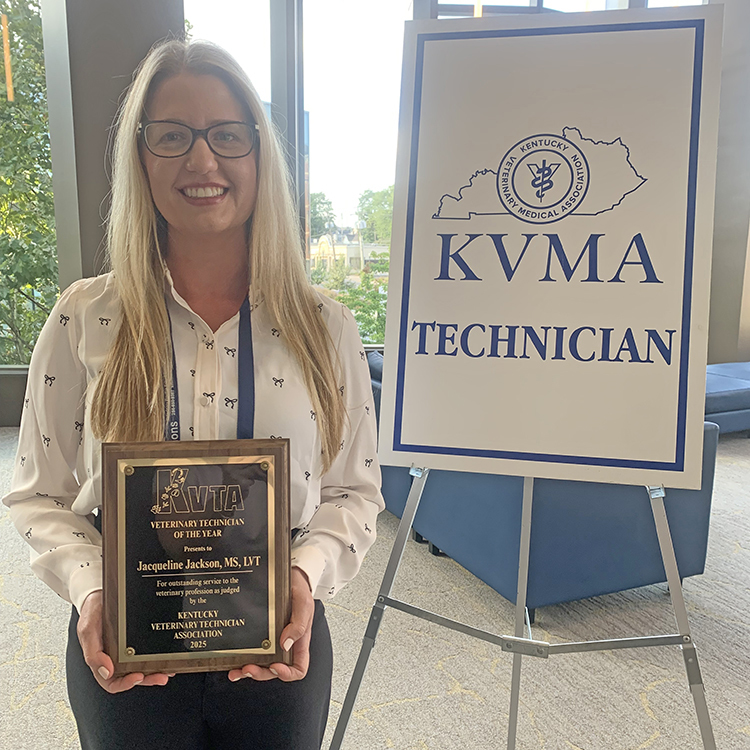 Owensboro, KY (10/06/2025) — Owensboro Community and Technical College (OCTC) proudly celebrates Professor Jacqueline Jackson, MS.Ed., Minor Equine Sc., LVT, who has been named the Kentucky Veterinary Technician Association (KVTA) Veterinary Technician of the Year, at last week's annual meeting. This prestigious honor recognizes her outstanding leadership, advocacy, and unwavering commitment to the veterinary technology profession.